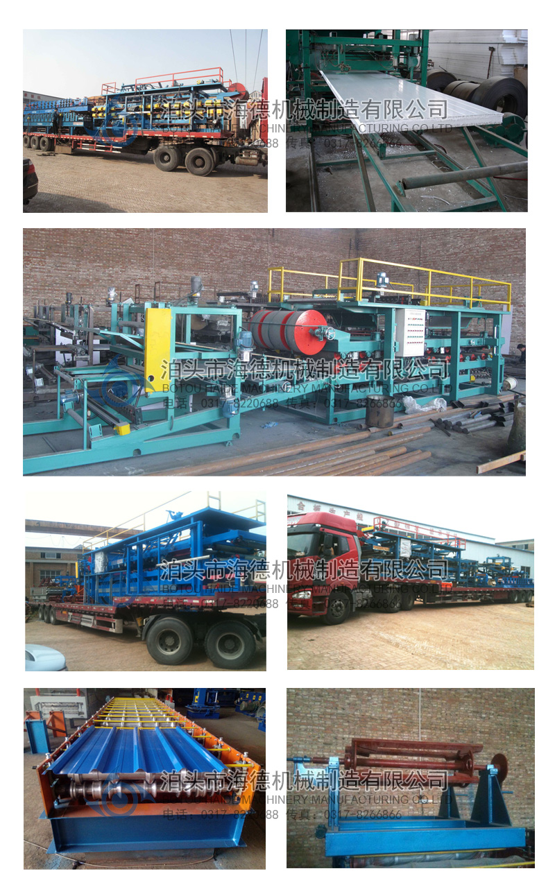 全套流水線放料機(jī)構(gòu)、壓型機(jī)構(gòu)(壓筋、涂膠、加溫、復(fù)合、卷邊、開槽、整邊、氣動(dòng)、自動(dòng)切割)組成,是生產(chǎn)工業(yè)廠房、倉庫等屋面板和墻板不可缺少的設(shè)備。